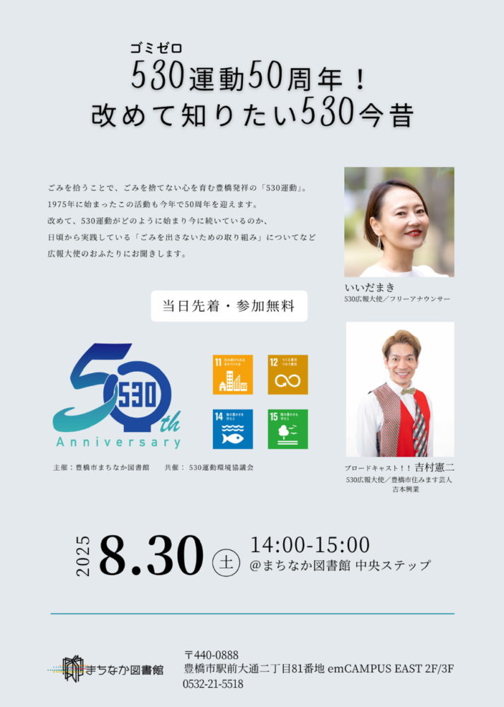 これはまちなか図書館が8月を「”知る”から始まる!!」を合言葉に、SDGsについて発信している中で、豊橋市が発祥の環境美化活動である530運動をご紹介くださる時間を作っていただきました。