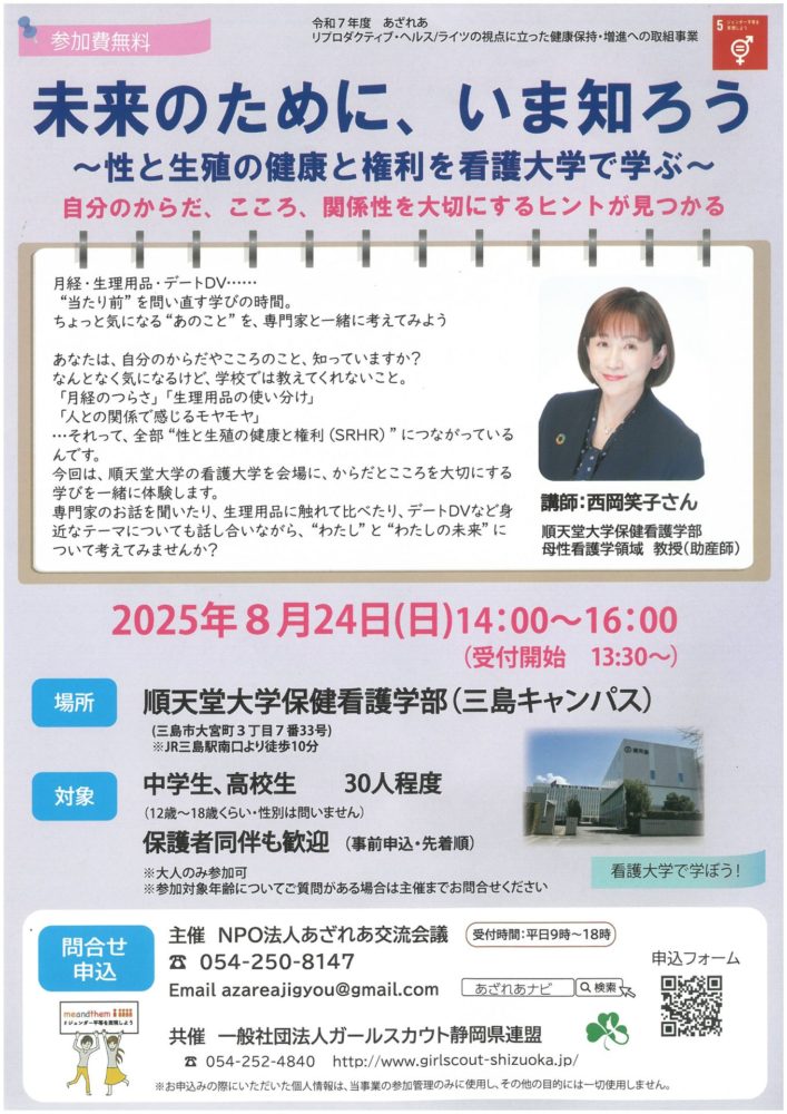 - ガールスカウト静岡県, 性と生殖の健康と権利, 未来のために、いま知ろう, 看護大学