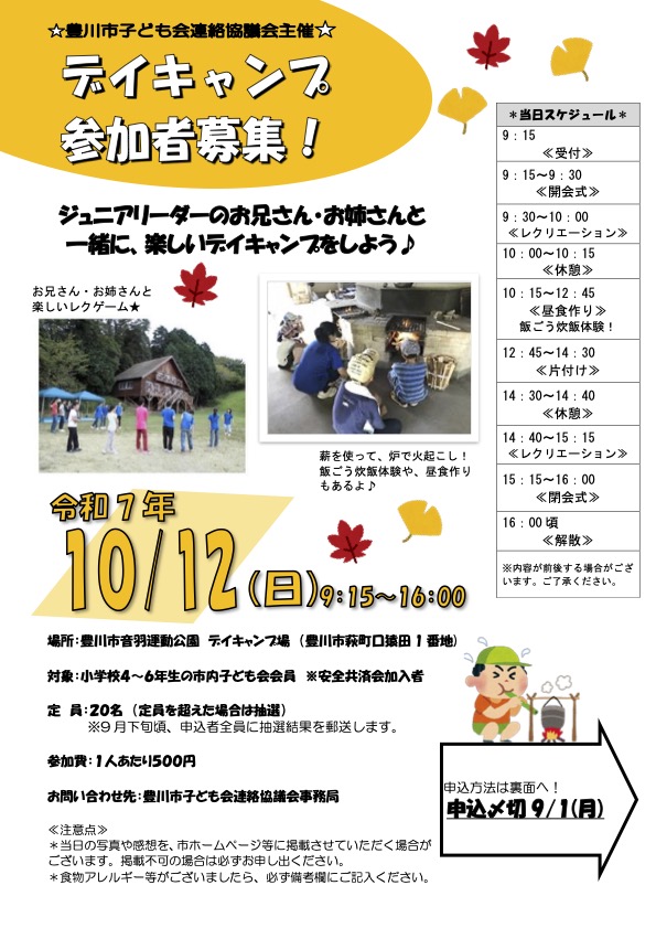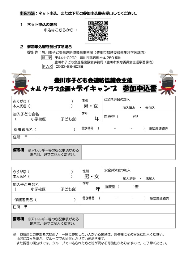 対象:小学4年生から小学6年生の豊川市内の子ども会の会員