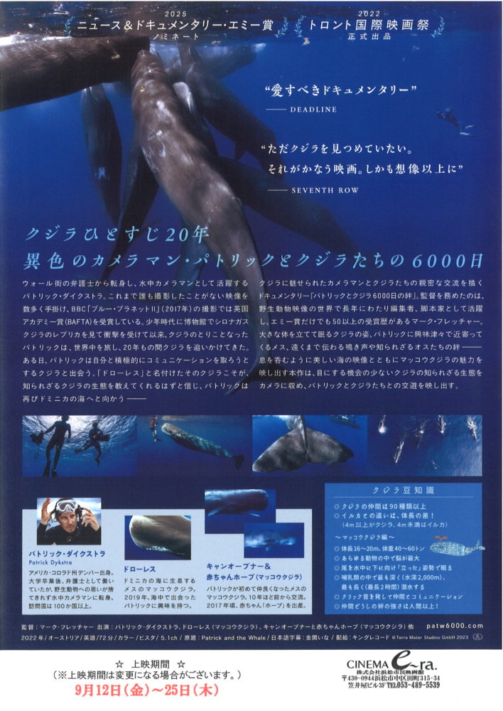 パトリックとクジラ 6000日の絆 9.12シネマイーラ公開