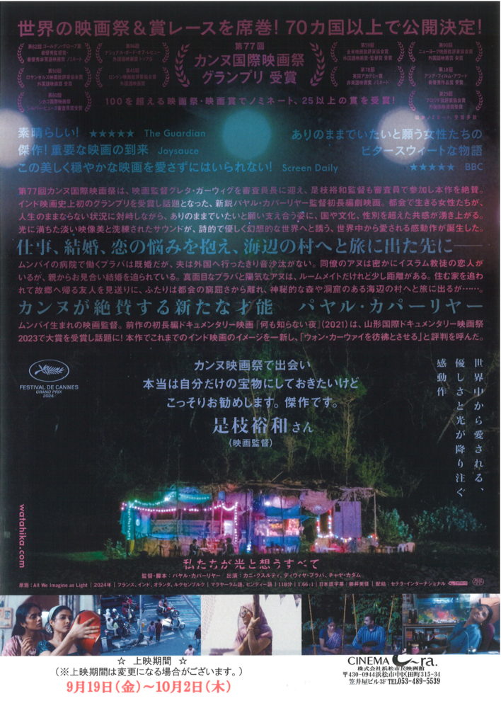 私たちが光と想うすべて 9.19シネマイーラ公開