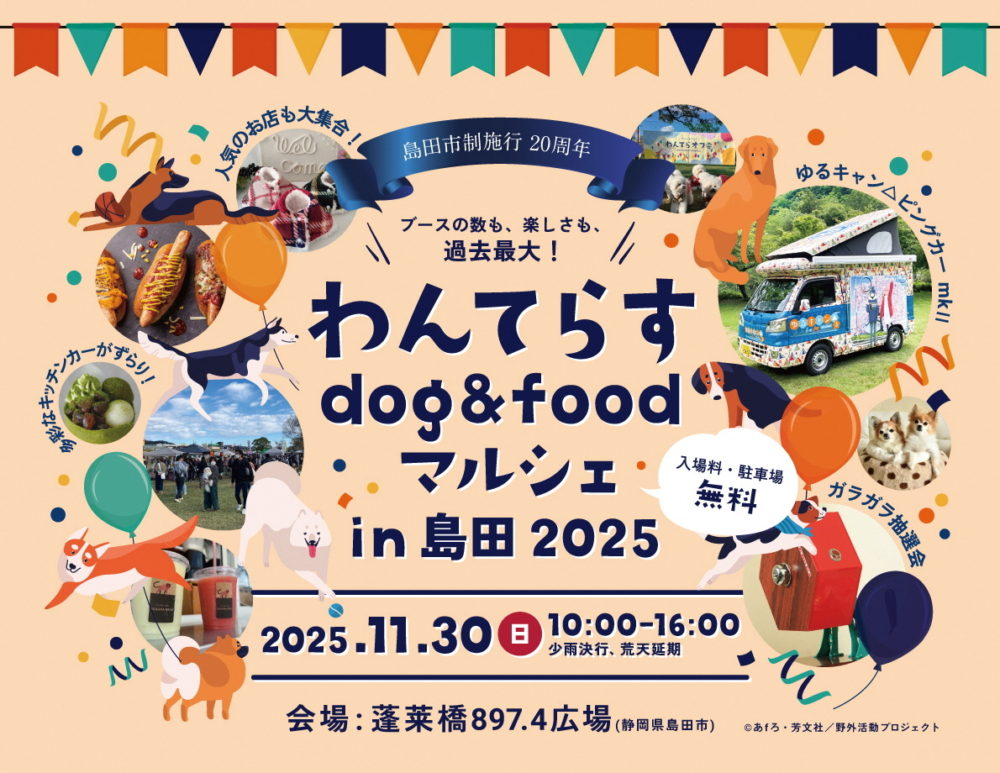 島田市では、今回で4回目の開催となる「わんてらすdog&foodマルシェin島田2025」を今年も開催します。