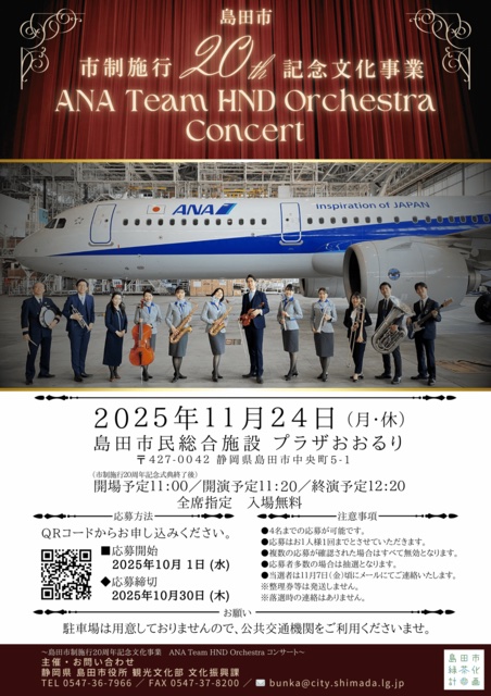島田市 ANA Team HND Orchestra コンサート 申込10/1から