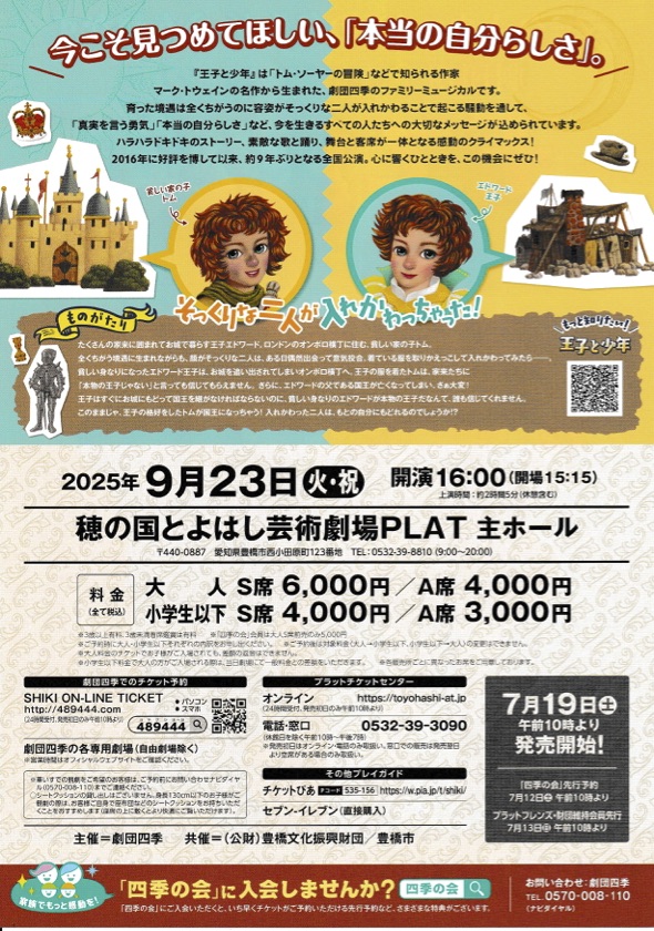 劇団四季ファミリーミュージカル『王子と少年』@穂の国とよはし芸術劇場PLAT