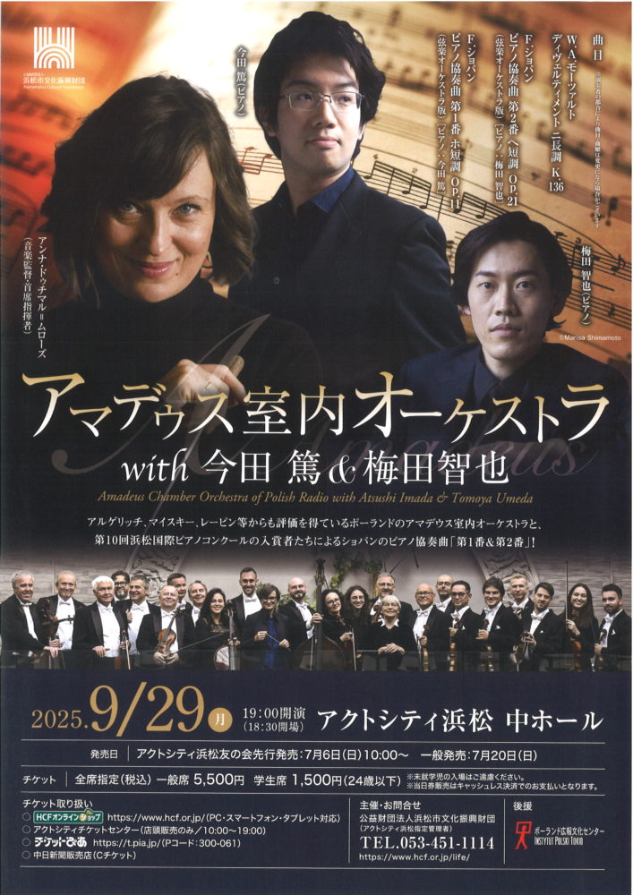 アマデウス室内オーケストラ with 今田篤&梅田智也 9/29(月)