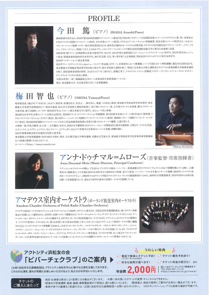 | 問い合わせ | 公益財団法人浜松市文化振興財団 文化事業課 電話:053-451-1114 |