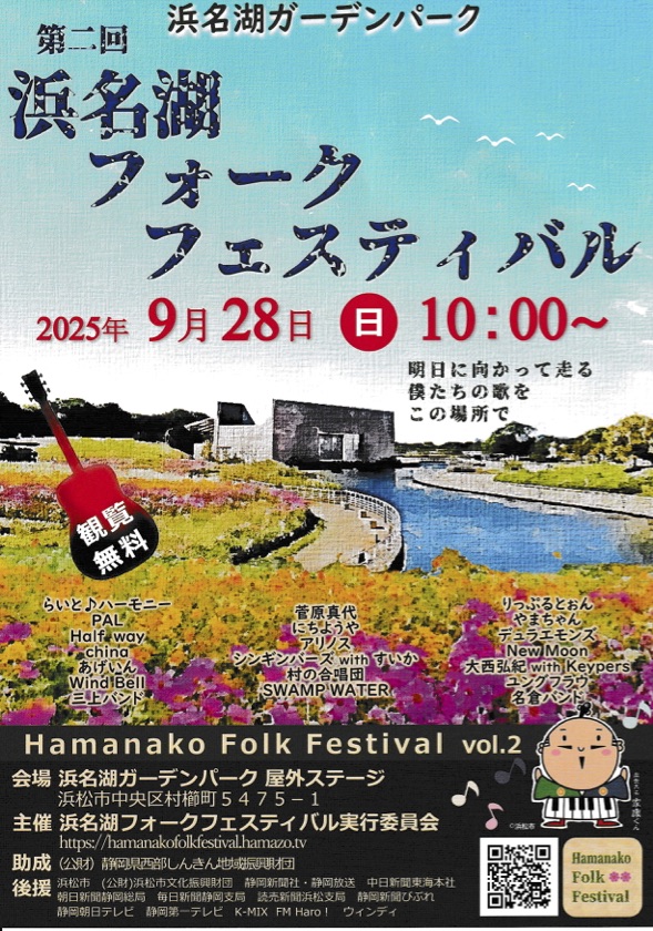 浜名湖ガーデンパーク屋外ステージにて懐かしのフォークソングや昭和ソングを市内外のアマチュアミュージシャン20組が胸熱く演奏します!