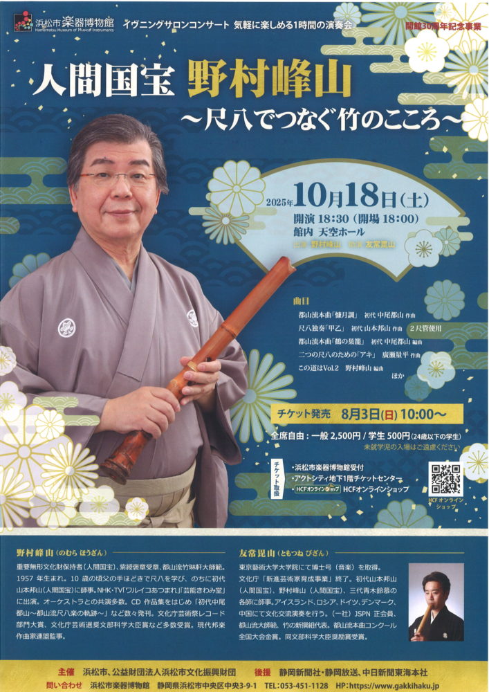 人間国宝 野村峰山 ~尺八でつなぐ竹のこころ~@浜松市楽器博物館
