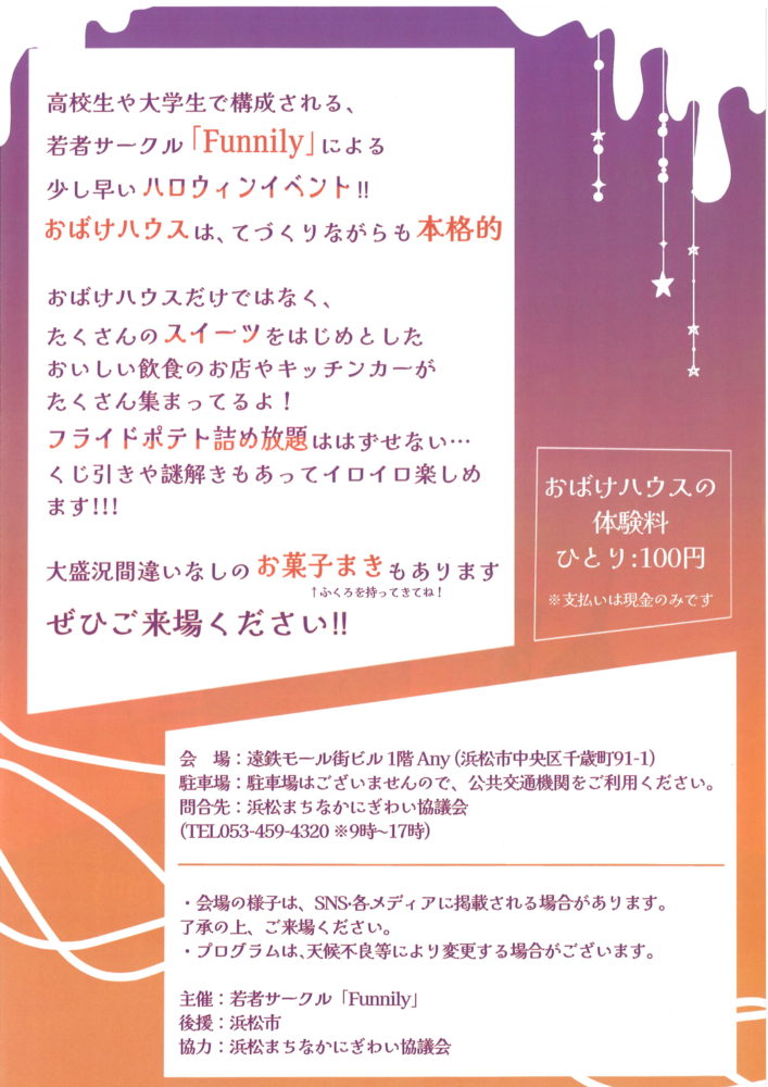 お問い合わせ:浜松まちなかにぎわい協議会 053-459-4320