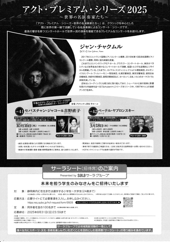 - アクト・プレミアム・シリーズ2025 vol.40 ジャン・チャクムル(ピアノ) はコメントを受け付けていません