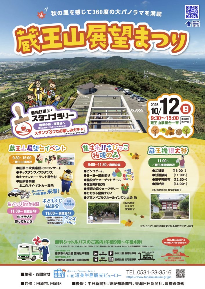 「田原市の中心にそびえる蔵王山の山頂や山麓一帯で「蔵王山展望台イベント」、「集まれ!ちびっこ権現の森」、「蔵王権現大祭」などが開催されます!