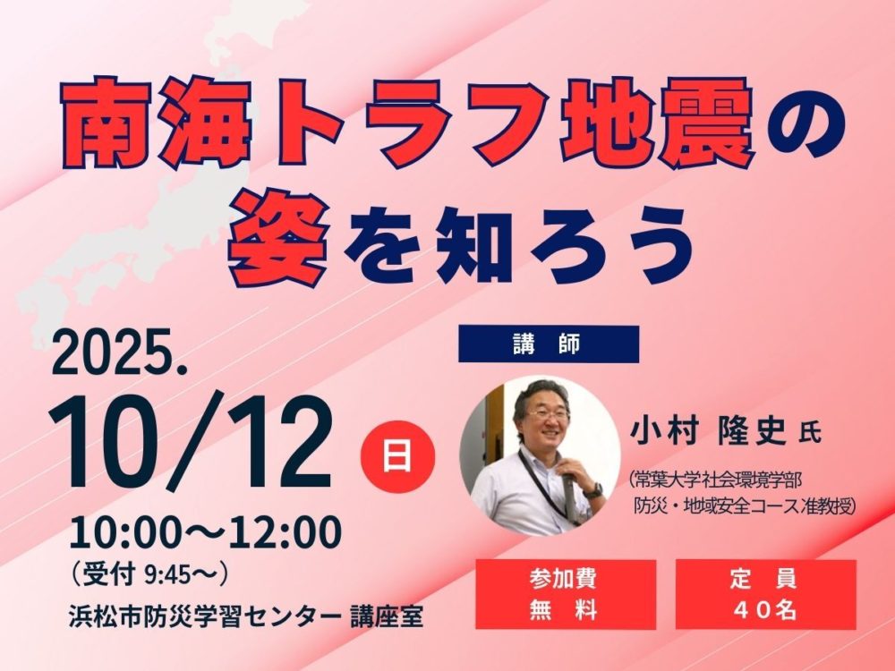 - 南海トラフ地震, 学習講座, 小村隆史, 浜松市防災学習センター
