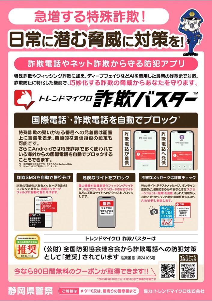 - スマホdeストップ!国際電話, 詐欺バスター, 静岡県警察本部