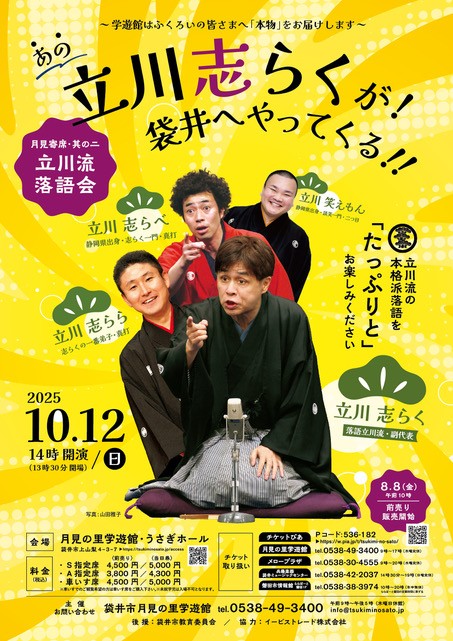 あの立川志らくが!袋井へやってくる!! @月見の里学遊館
