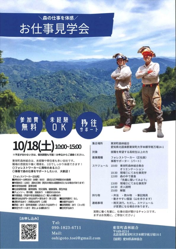※フォレストワーカー(正社員)の詳細等については上記のチラシをご覧ください。