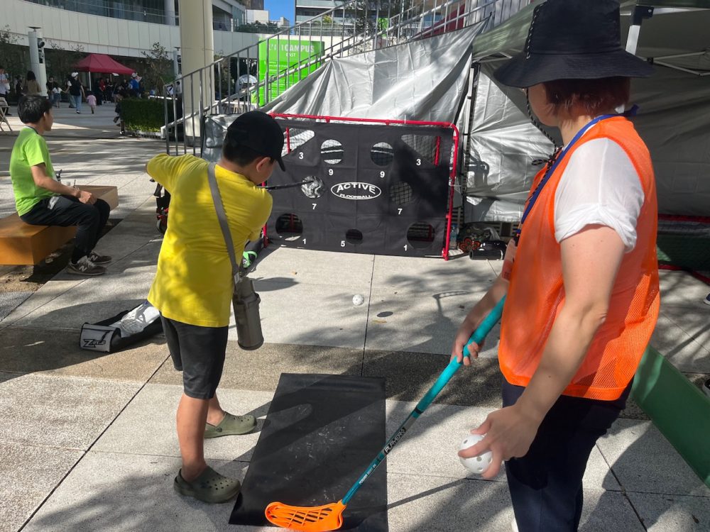 ピックルボールやレクリエーションスポーツのブースも大盛況で、みなさん何度も列に並んで楽しく汗をかいていました。