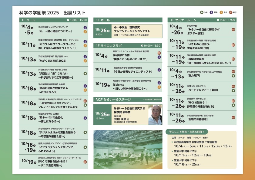| 会場 | ホール、セミナールーム、サイエンスラボフロアマップをみる |