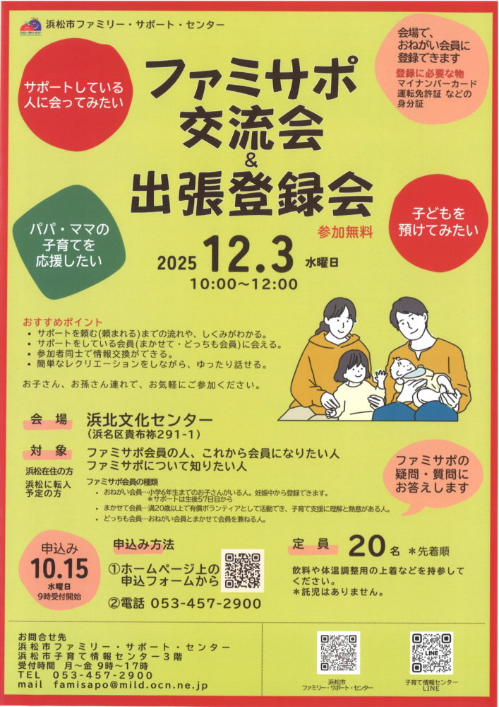 浜松市 ファミサポ交流会&出張登録会 12/3(水)