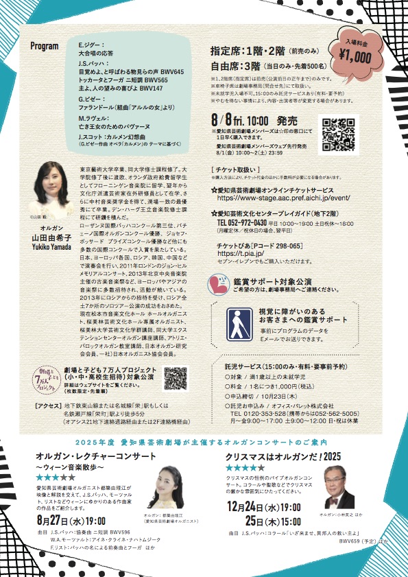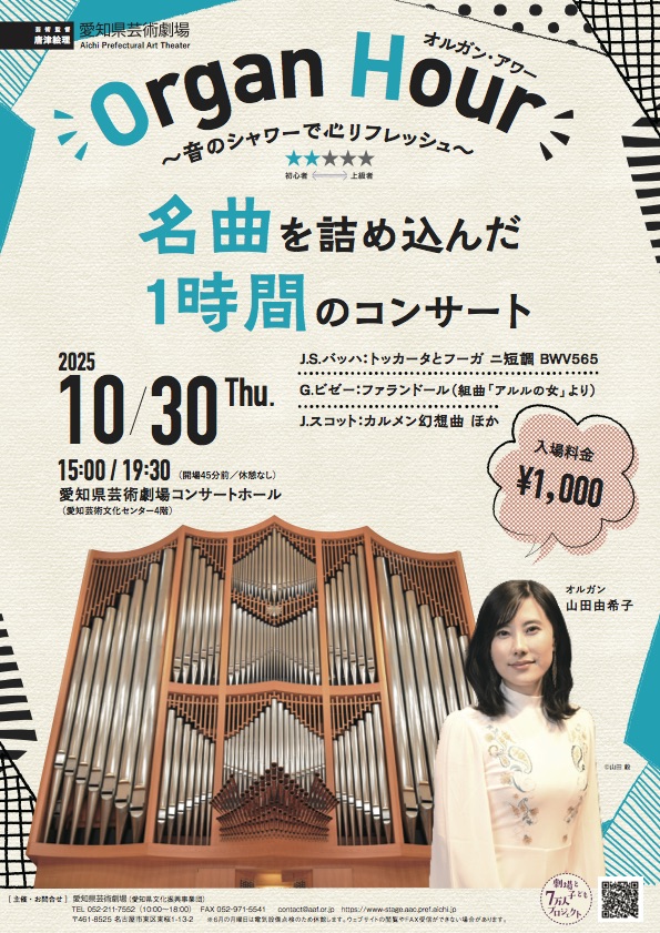 - オルガン・アワー, 山田由希子, 愛知県芸術劇場, 音のシャワーで心リフレッシュ