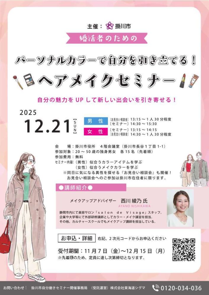 対象者:20~50歳の独身男女(お見合い相談会は掛川市在住者限定)