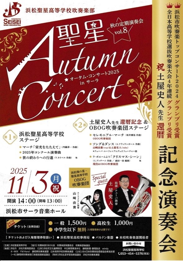 浜松聖星高等学校吹奏楽部 聖星オータムコンサート2025 inサーラ