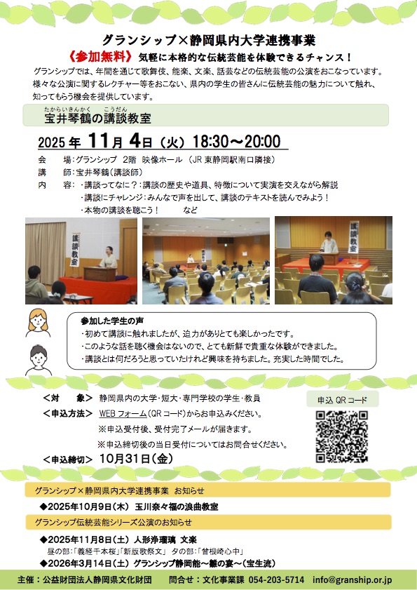 グランシップ×静岡県内大学連携事業「宝井琴鶴の講談教室」