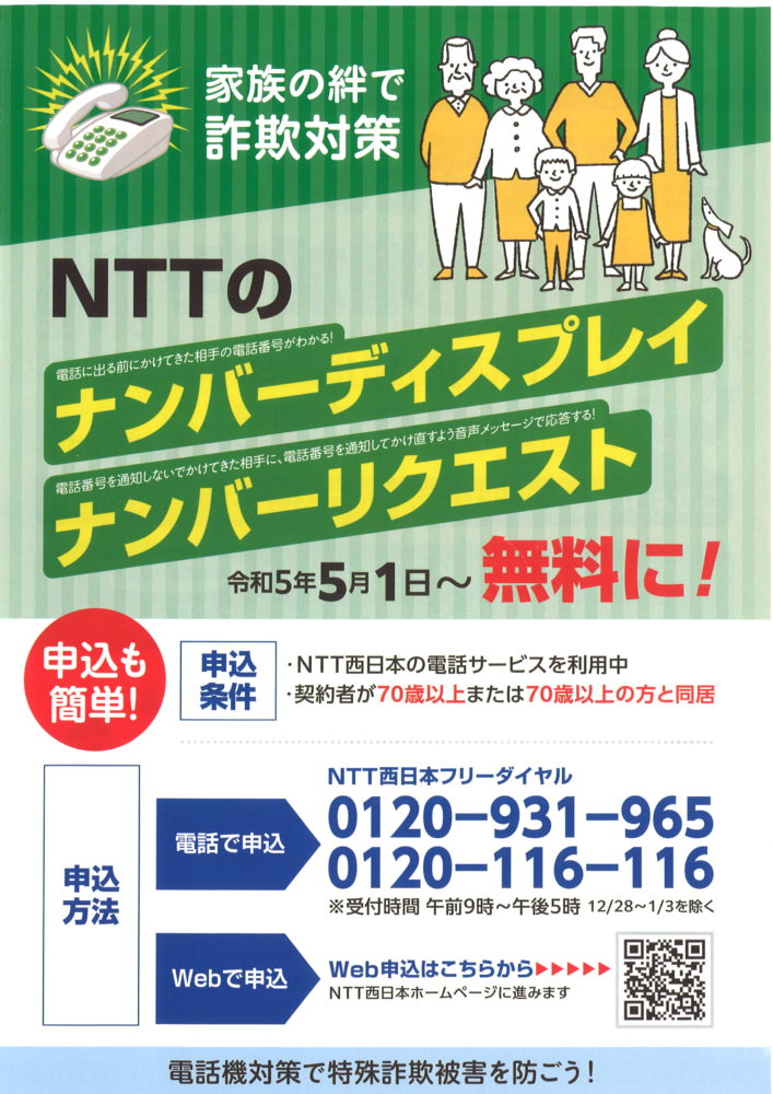 NTTのナンバーディスプレイ・ナンバーリクエスト無料に!R5.5.1〜