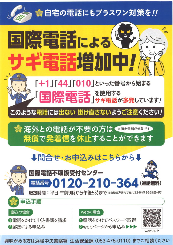 浜松中央警察署 生活安全課 053-475-0110