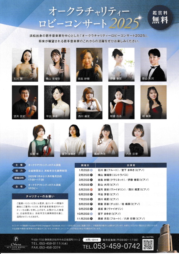- オークラアクトシティホテル浜松, オークラチャリティーロビーコンサート, ピアノ, フルート, 六井彩華, 黒柳月花