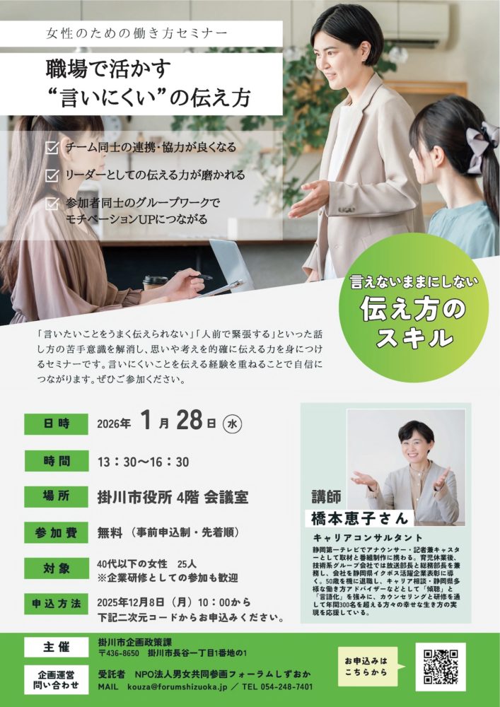 女性のための働き方セミナー『職場で活かす❝言いにくい❞の伝え方』