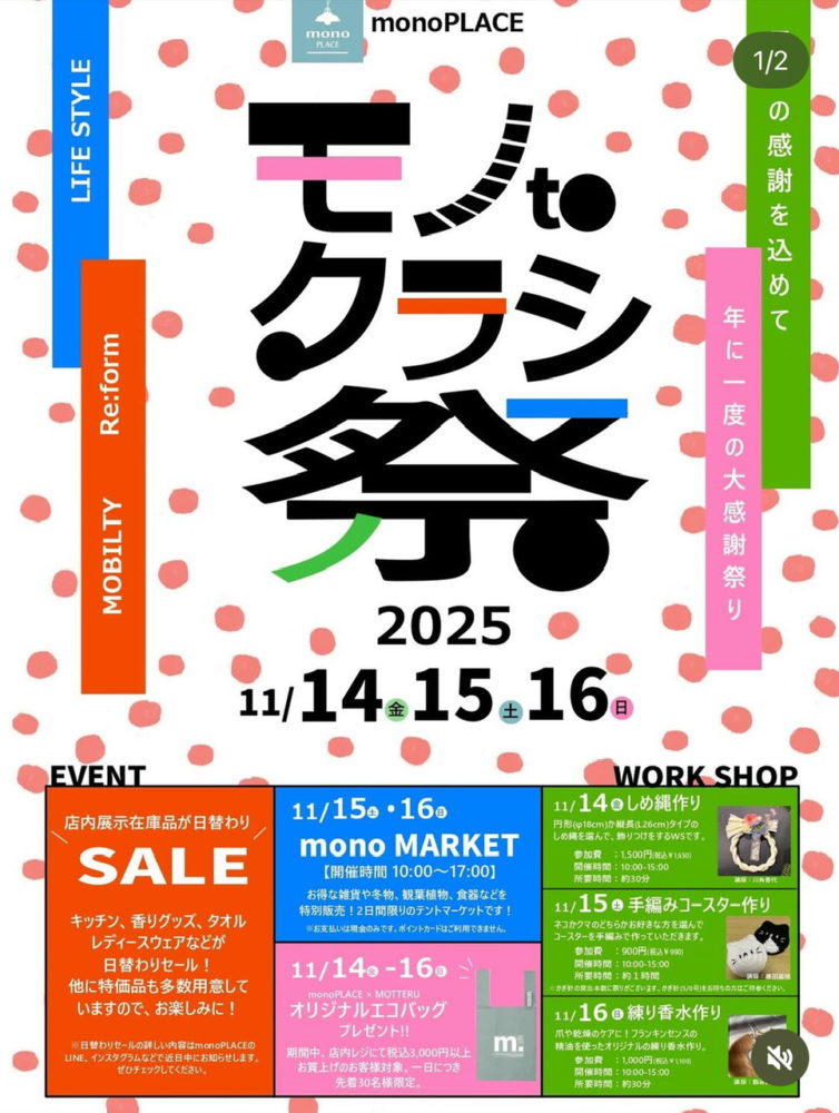 あ、11月14、15、16日の3日間はモノプレイスさんの周年祭も開催だそうですよー\(^o^)/