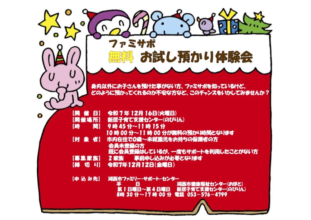 湖西市 ファミサポ お試し預かり体験会 12/16(火)