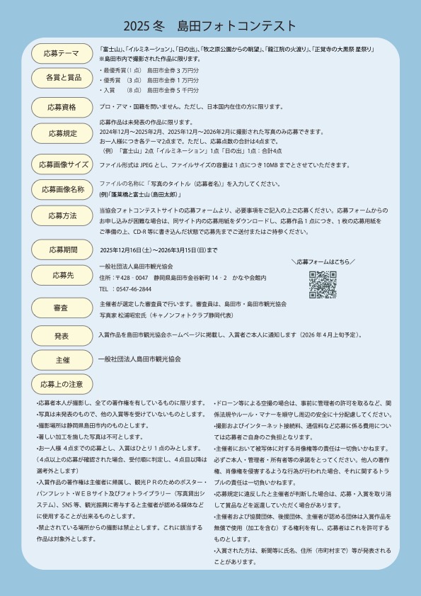 2025 冬 島田フォトコンテスト 12/16〜3/15