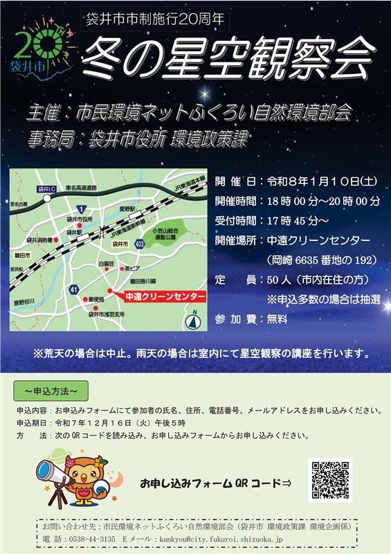 ※ 屋外での観測ですので、寒くない服装でお越しください。