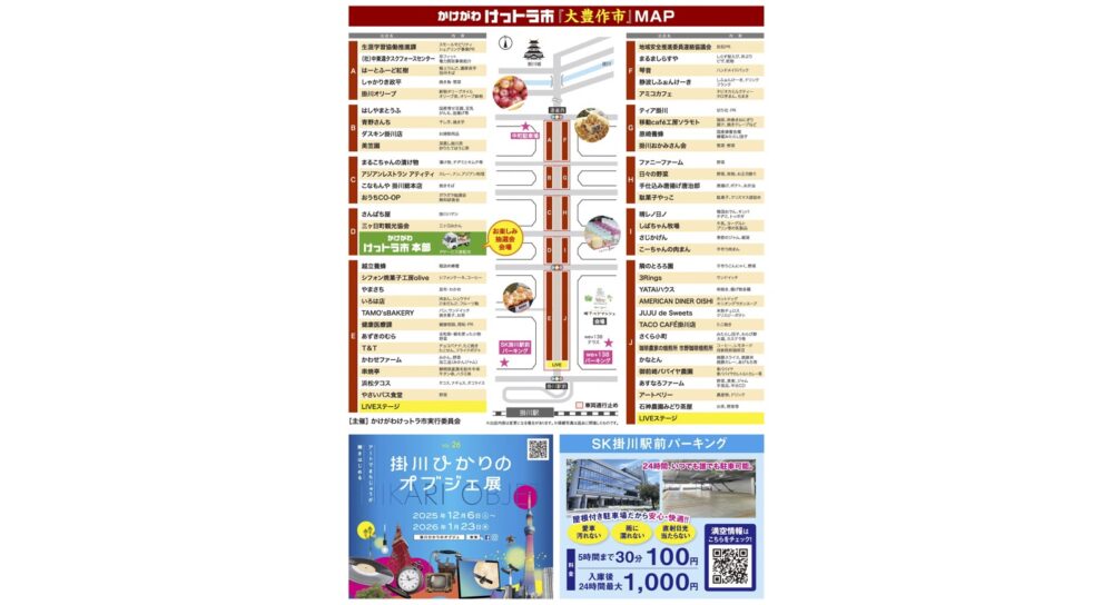 問い合わせ:「かけがわ けっトラ市」事務局 かけがわ街づくり株式会社 0537-61-1151