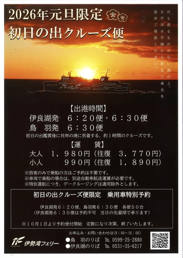 - 伊勢湾フェリー 2026年元旦限定!初日の出クルーズ便 2025年12月17日