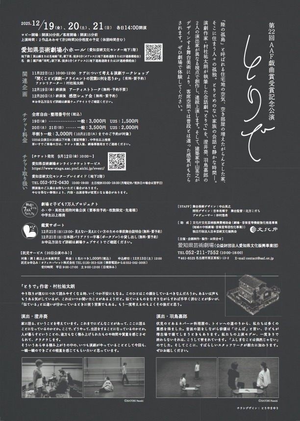 - AAF戯曲賞受賞記念公演, とりで, 愛知県芸術劇場, 村社祐太朗