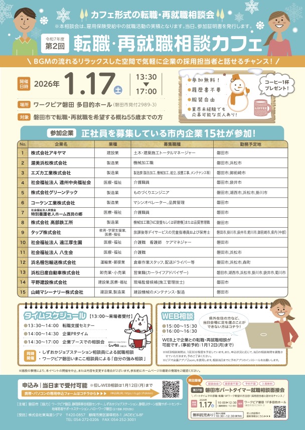 - 磐田市, 転職・再就職相談カフェ