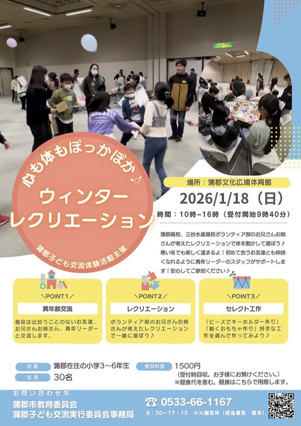 蒲郡市 心も体もぽっかぽか ウィンターレクリエーション