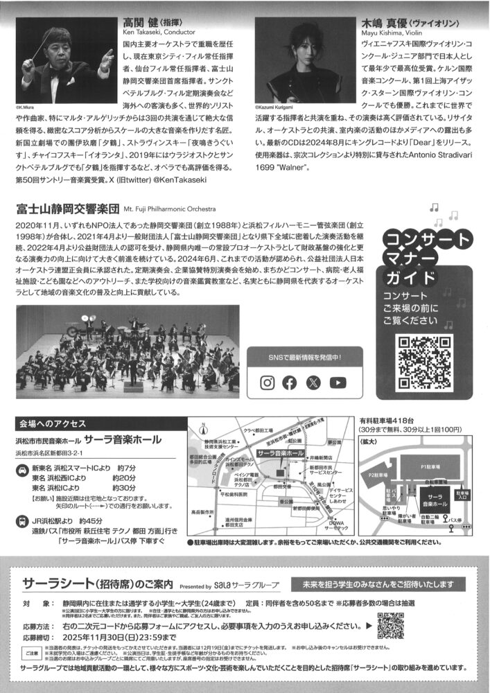 浜松ニューイヤーコンサート in サーラ音楽ホール 1/10(土)