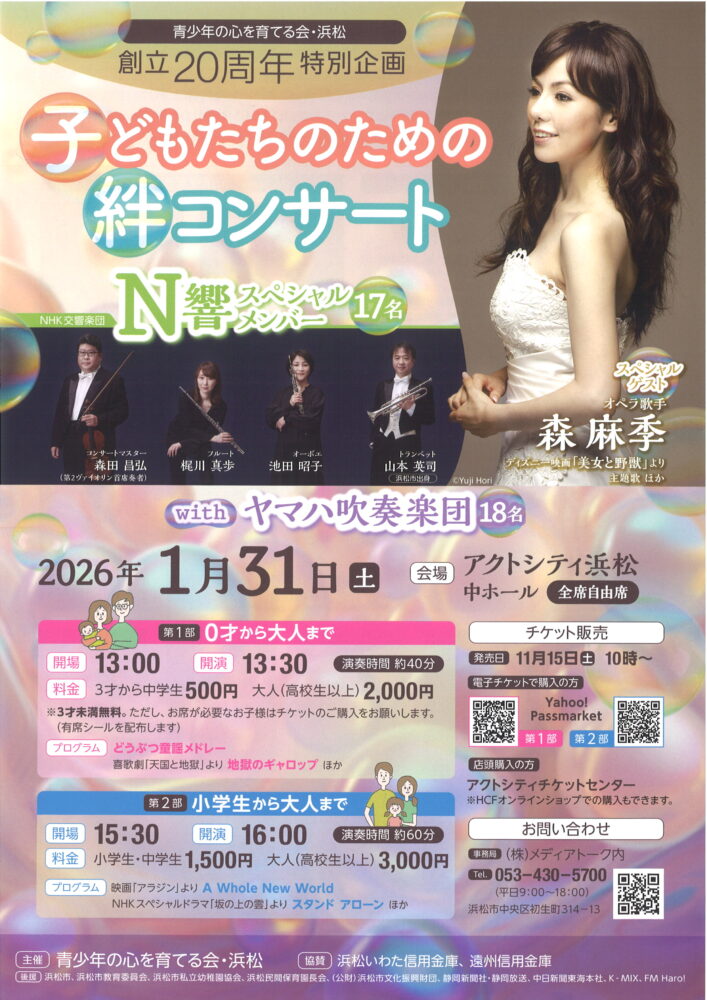| 問い合わせ | 青少年の心を育てる会・浜松 電話:053-430-5700(株式会社メディアトーク内 平日9:00~18:00) E-mail:seisyounen@media-talk.co.jp |