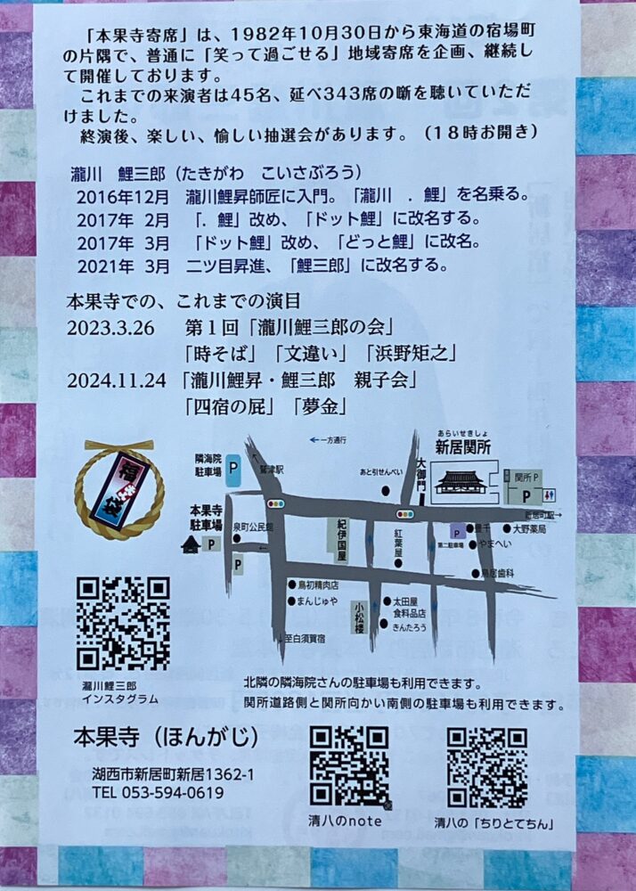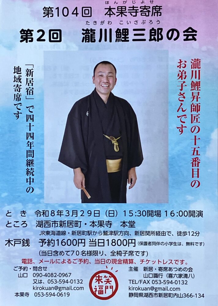第104回 本果寺寄席「第2回瀧川鯉三郎の会」