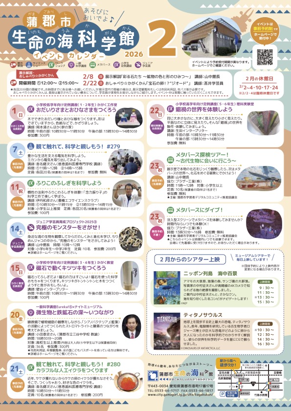 蒲郡市生命の海科学館 2月イベントカレンダー