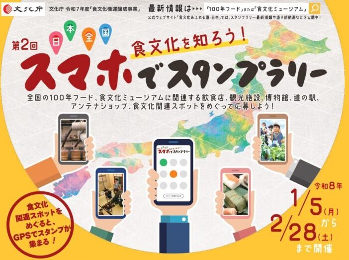 食文化を知ろう! 日本全国スマホでスタンプラリー 2/28まで