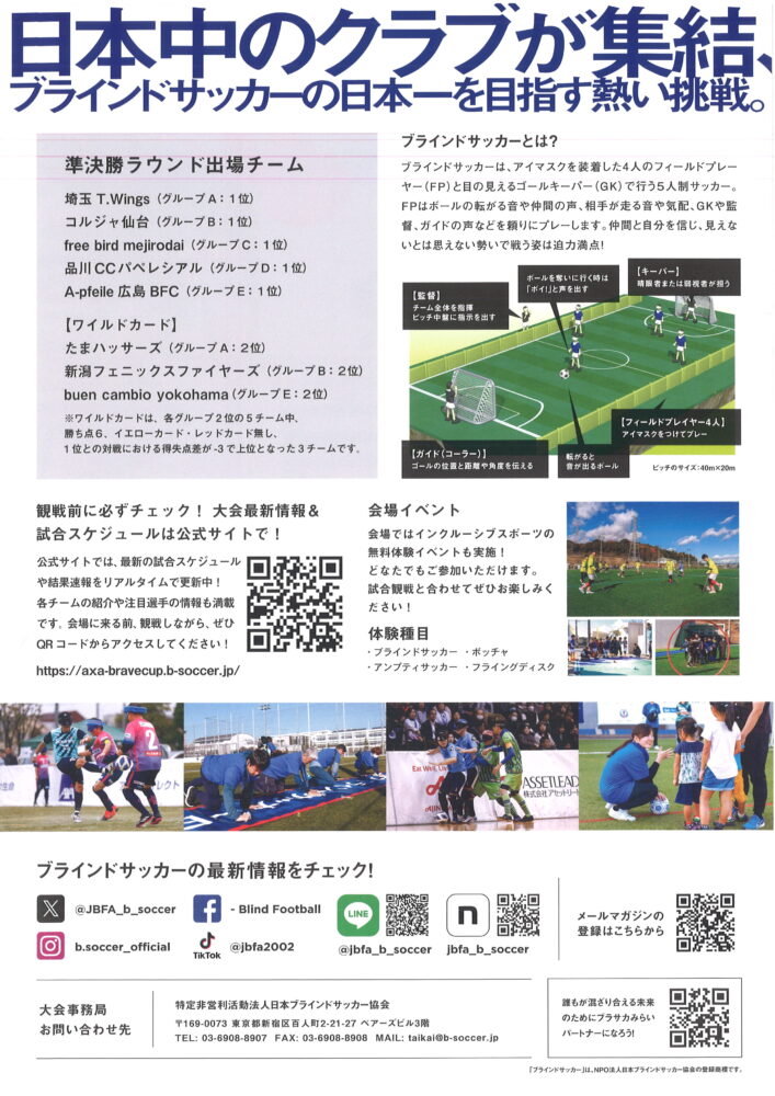 アクサ ブレイブカップ ブラインドサッカー日本選手権 1/17,18