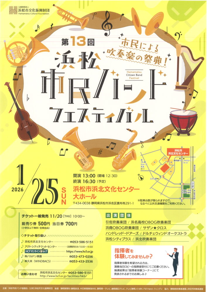 第13回浜松市民バンドフェスティバル 1/25(日) 浜松市浜北文化センター
