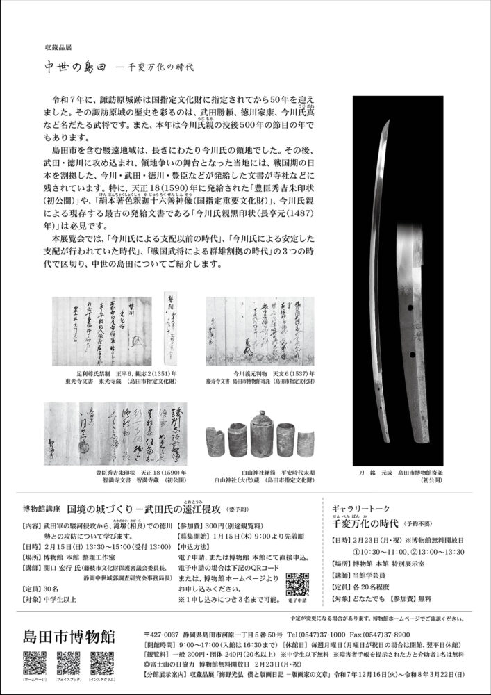 島田市博物館 収蔵品展「中世の島田-千変万化の時代」 3/22まで