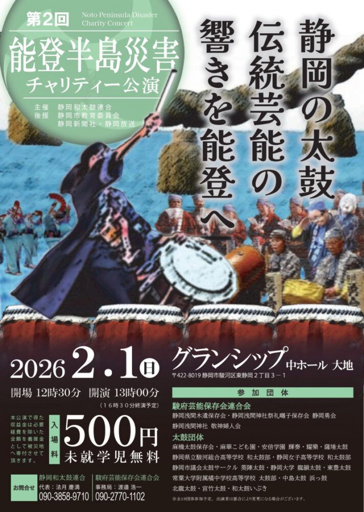 第2回 能登半島災害チャリティー公演「静岡の太鼓 伝統芸能の響きを能登へ」@グランシップ