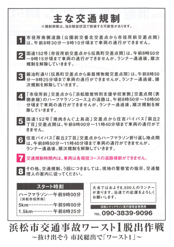 - 交通規制, 浜松シティマラソン