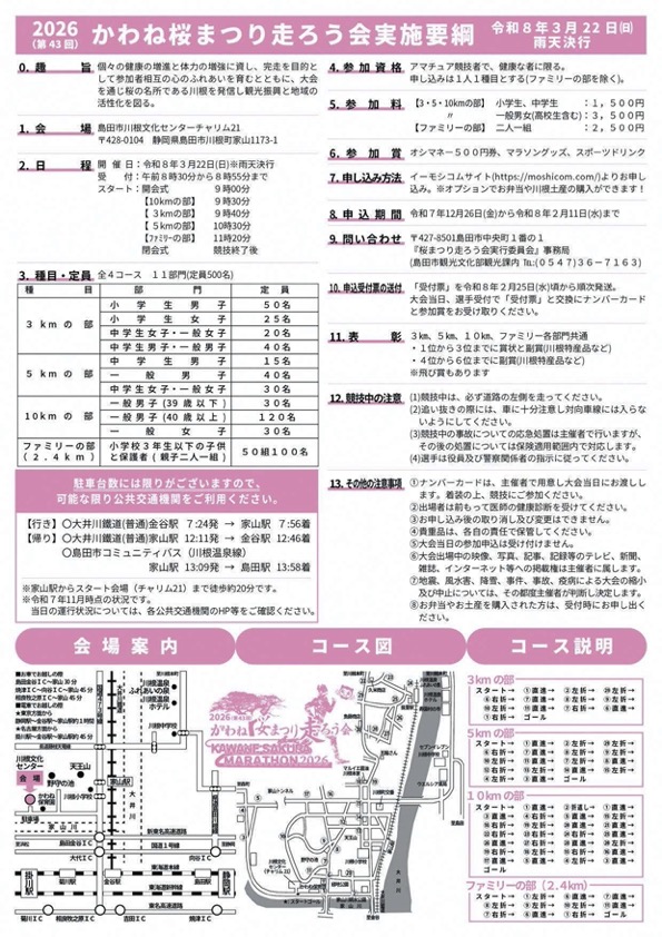 2026(第43回)かわね桜まつり走ろう会 エントリー2/11まで